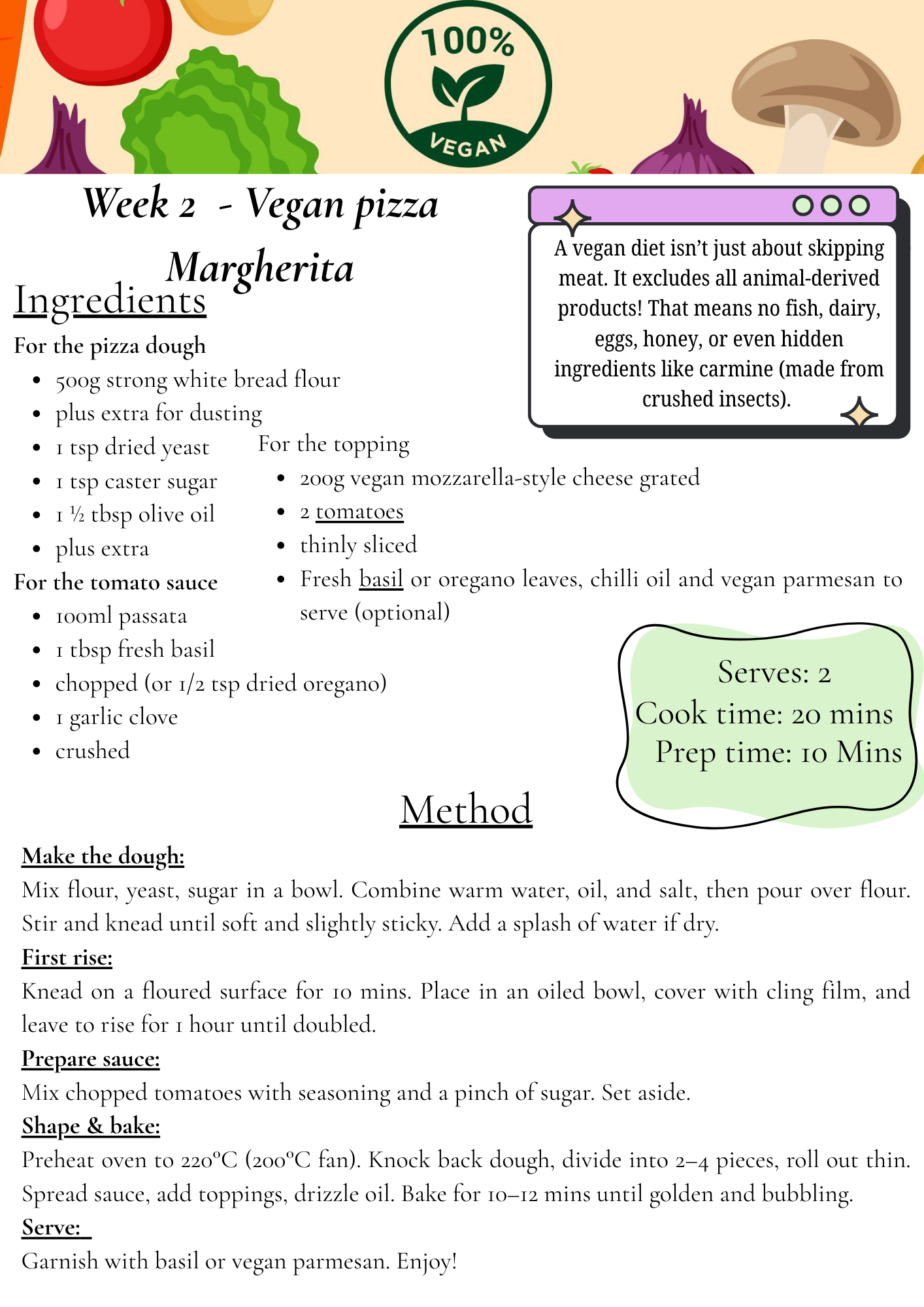 Week 2: Vegan Pizza Margherita Recipe.