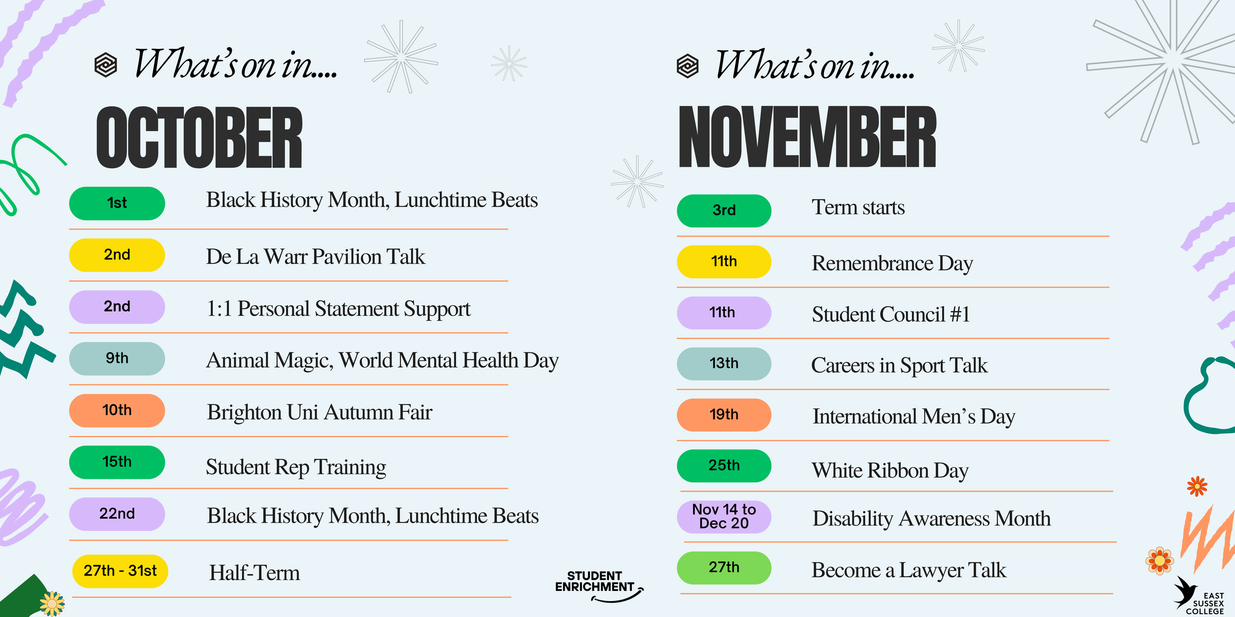 Weโve got a brilliant week lined up โ with our Student Voice Training session taking place, our first Film Club screening of โThe Lost Boysโ, and the launch of the Christian Union club. Plus, check out this weekโs Careers Highlights, including the Sussex Inspires Talk and advice on Contextual Offers for university applications. Donโt miss out! ๐